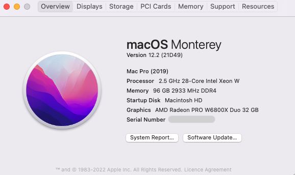 Is it because of Monterey Lates update or because of W6800X Duo or Photoshop itself ?