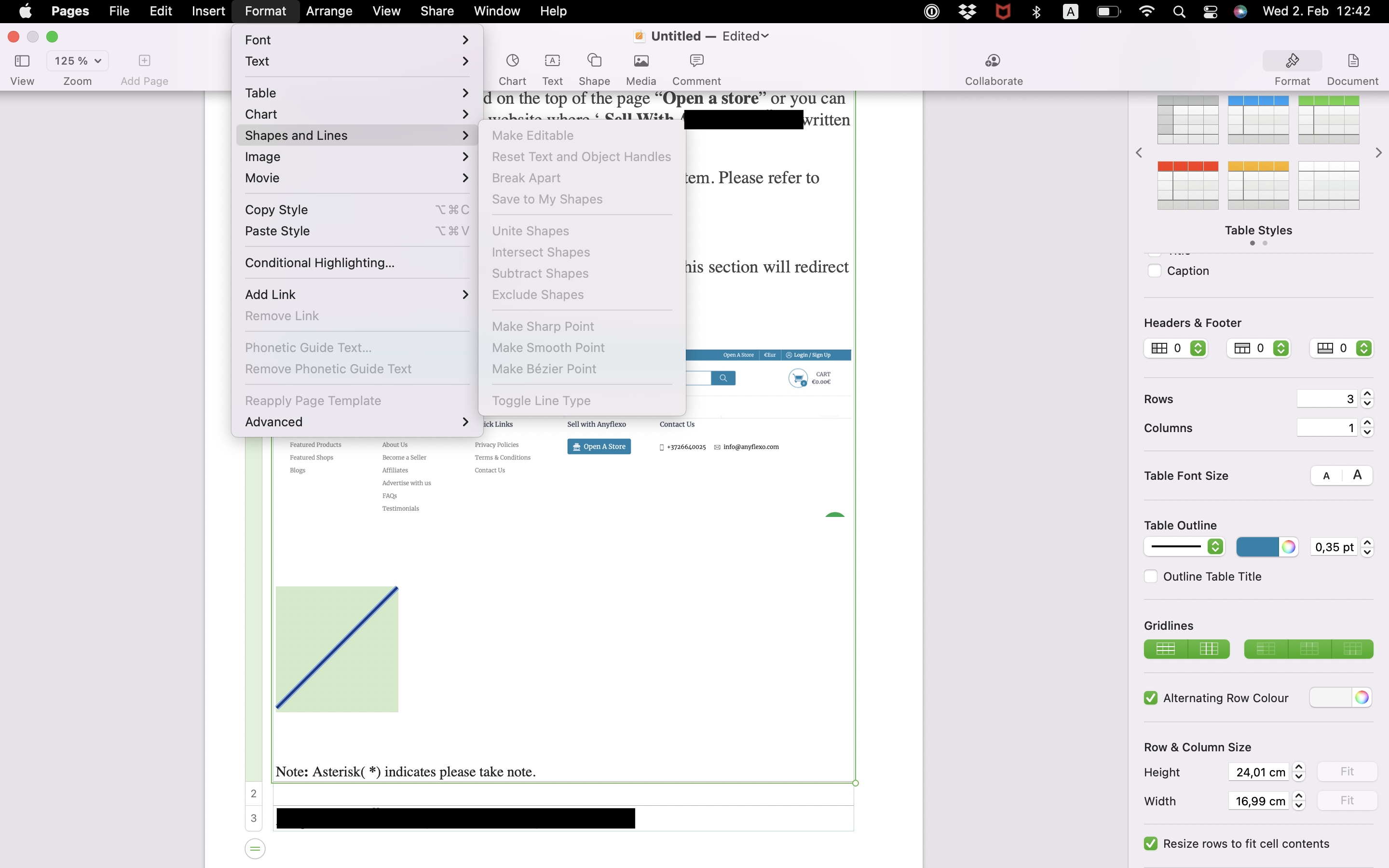 In pages once I added a shape, I am not able to edit it using edit. -> make editable, it shows greyed out and can't select.