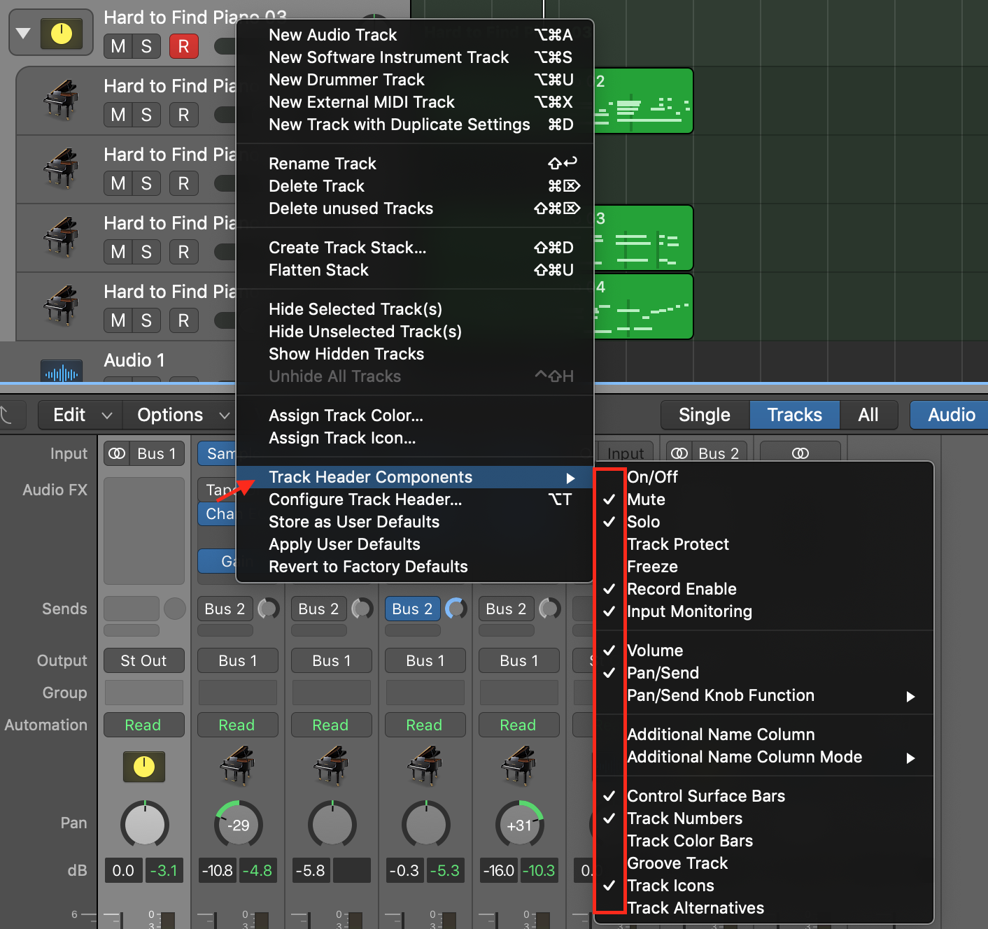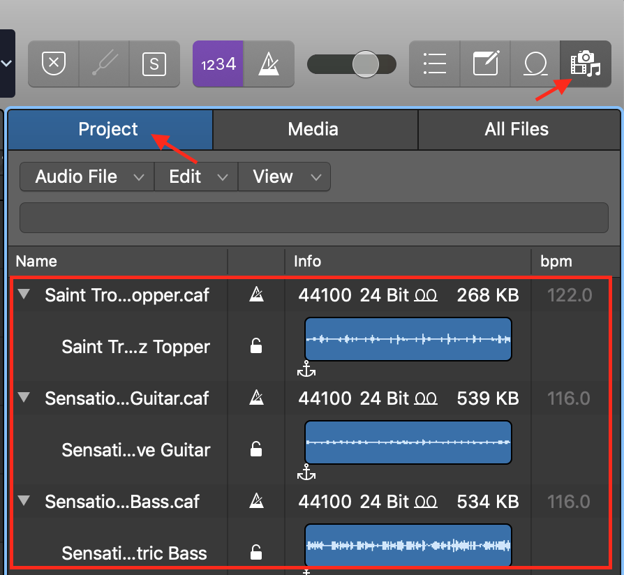 Screen shot attached. Note the Bass guitar track as an example.