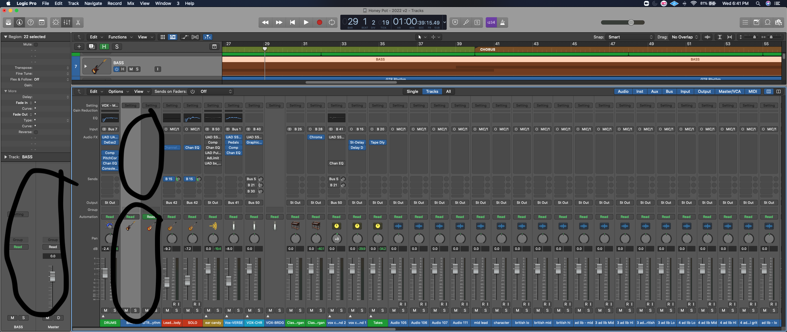 After record multiple takes of a track, I went to playback the tracks but something has gone haywire. I'm missing channel and track faders. My bussing routes are gone too. Also missing all plugins. So bizarre.