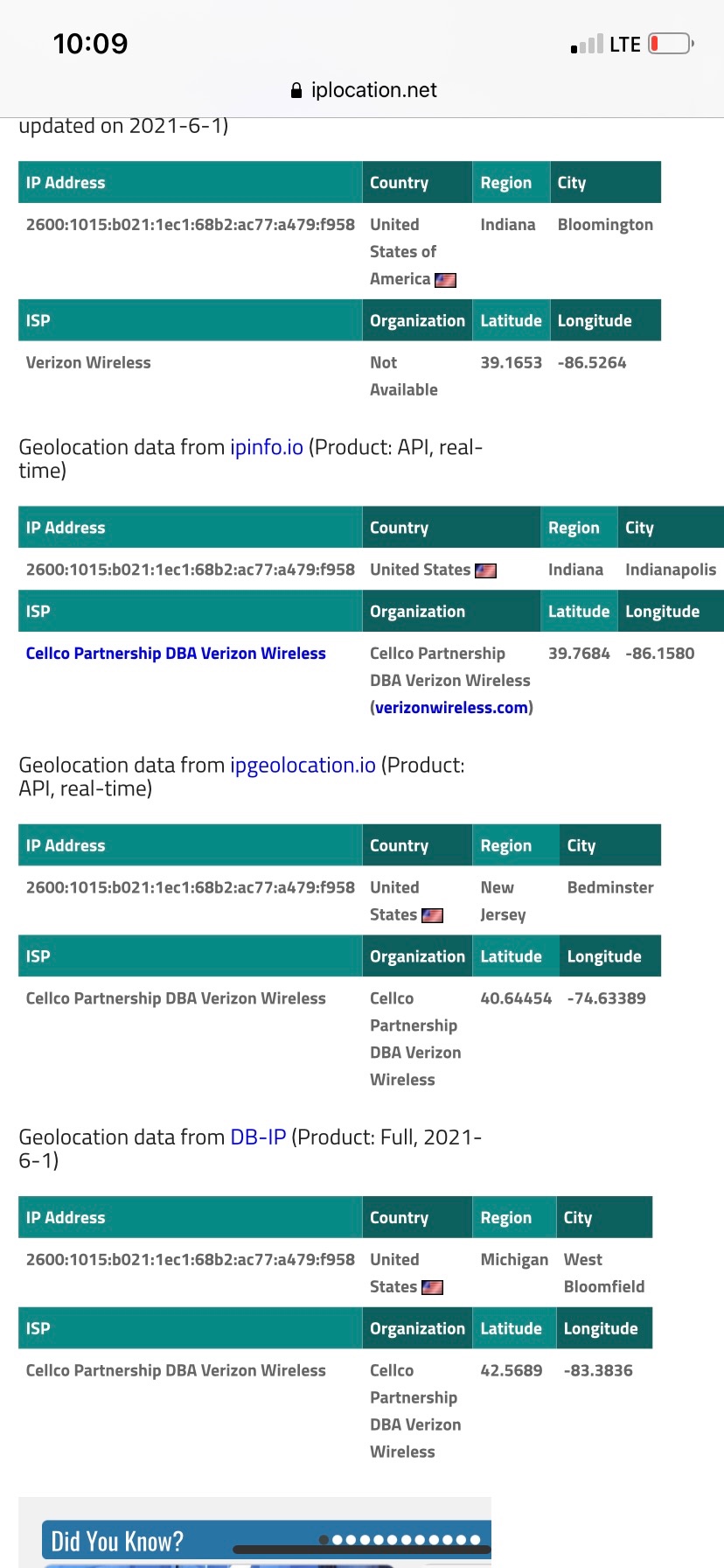 My internet provider has supplied me with 4 routers in 6 months. Nothing seems to change. When I wipe my devices, I have learned to check the weather app. It always comes up in New York.