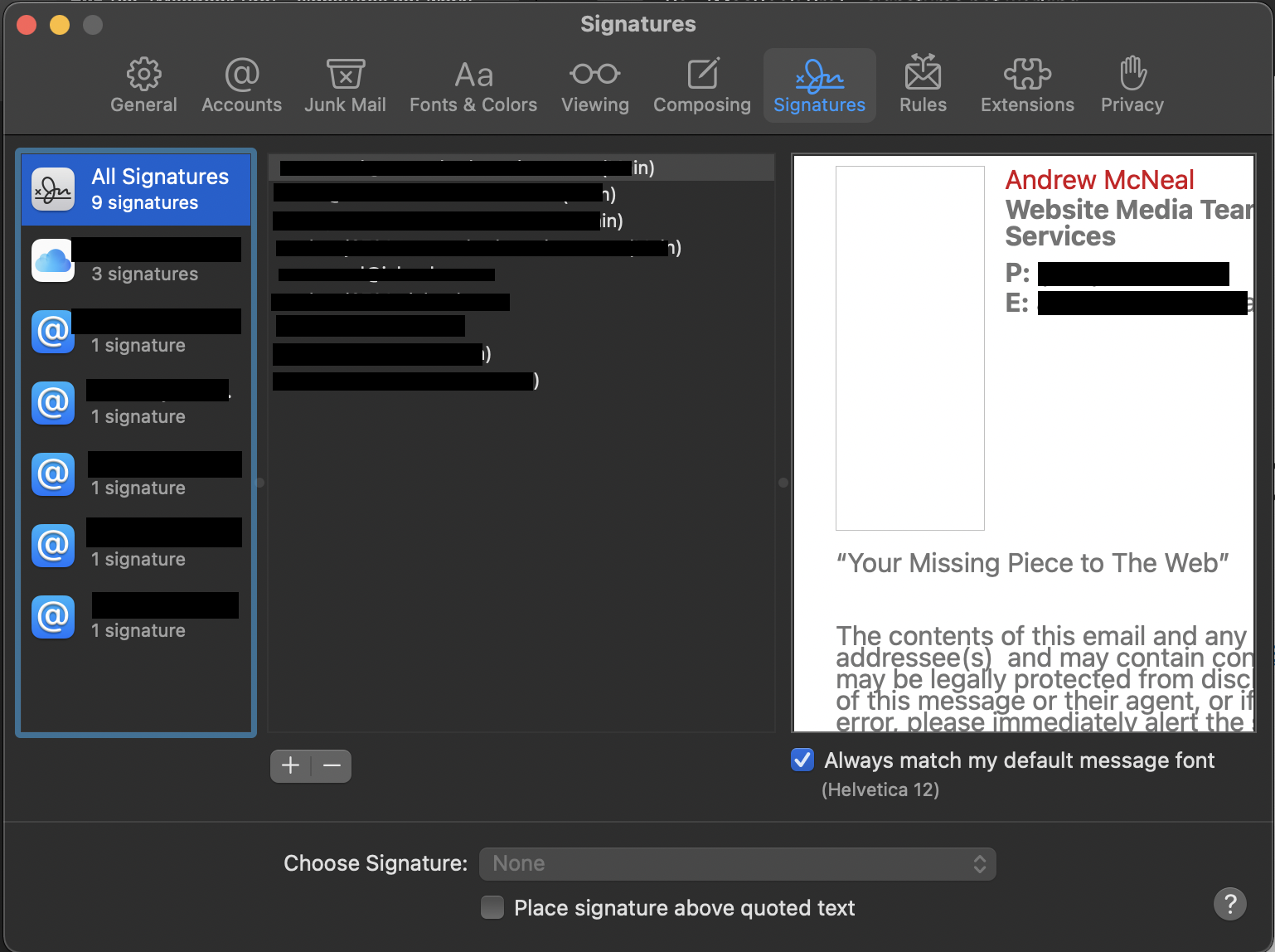 Apple Mail signatures not working