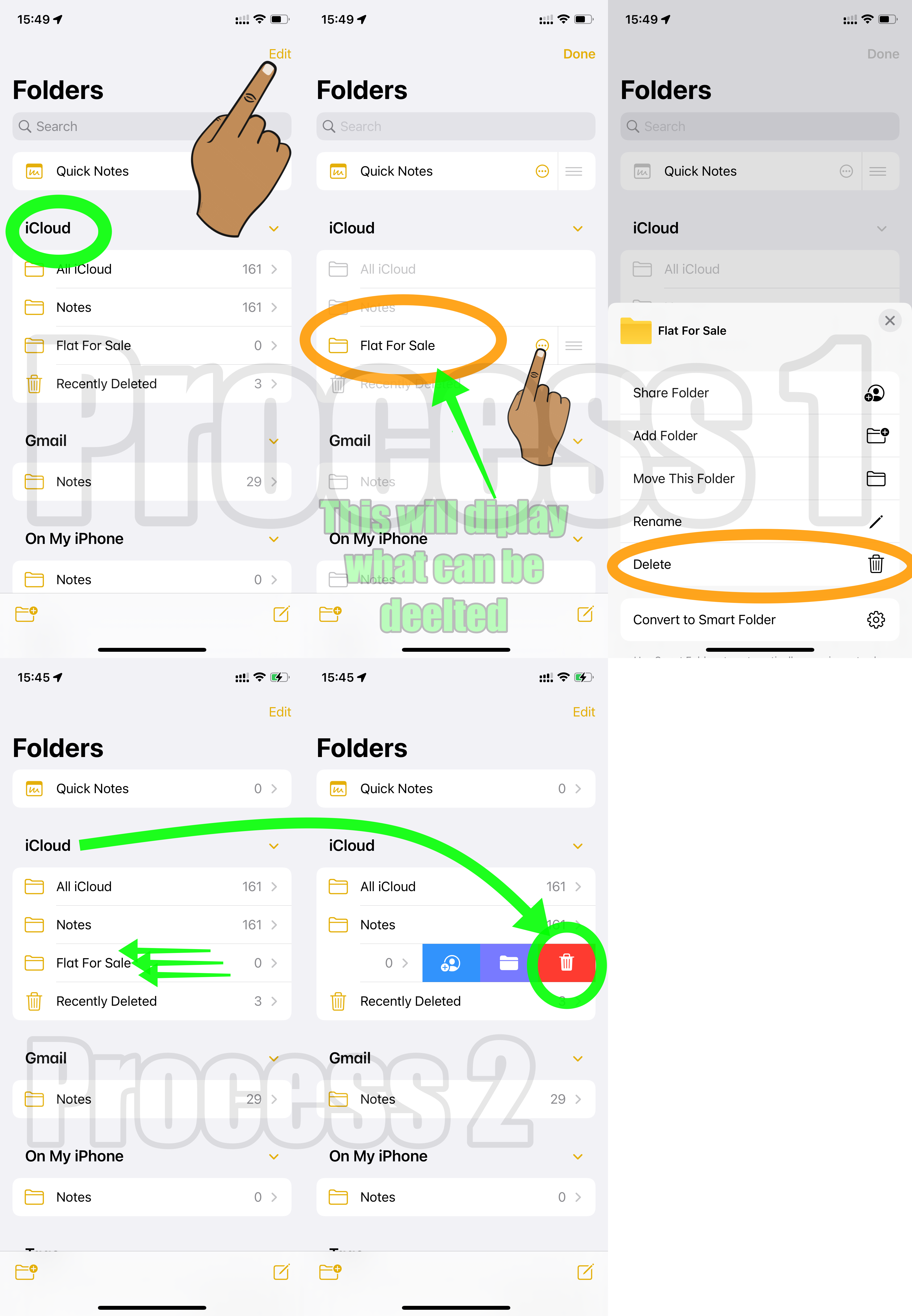 Help! I created a folder on my iPhone, but don’t need it anymore. However, it won’t delete. I tried to go through iCloud, but doesn’t show up.
