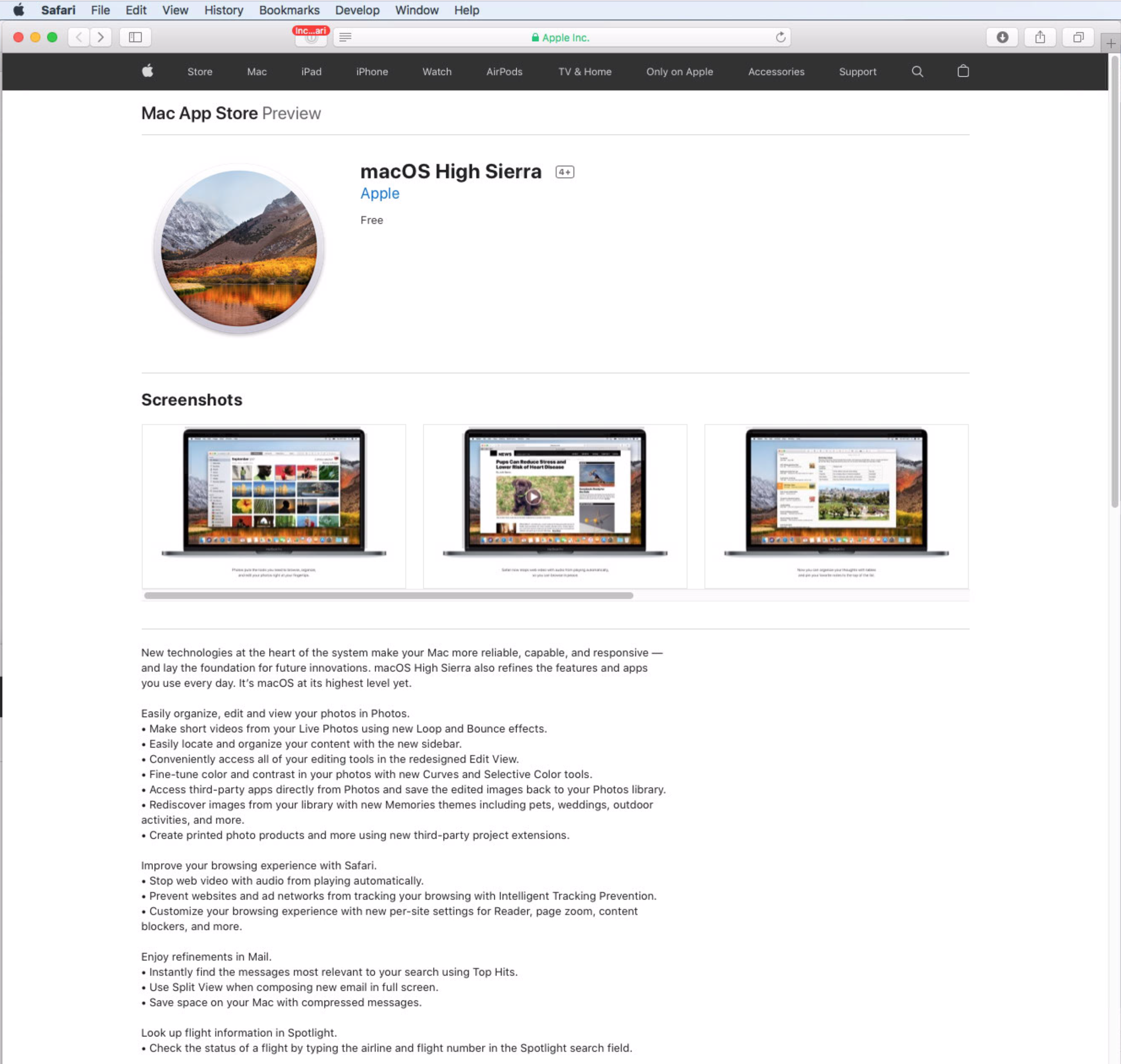 Hi, I've got an old iMac (27-inch, Mid 2011) the latest macOS that supports it is High Sierra (10.13.6). The iMac accumulated a number of useless apps and utilities over the years, and I'd just like to wipe it, and do a clean install of High Sierra. I'm having trouble finding where to download the full install version though. I searched the App Store on the iMac for "High Sierra" and it didn't com up. I found this page on the Apple Support site "https://apps.apple.com/us/app/macos-high-sierra/id1246284741?mt=12". When I open it on my iMac, I get the App Store Preview page, but there is no link to take me to the App Store. (Interestingly enough, when I try this URL from my other, newer Mac (macOS 12.2), the preview page, does contain a link to the App Store High Sierra page, but when I click on it, it just takes me to the Software Update pane in Control Panel where it tells me that my Mac is up to date, instead of allowing me to download the software").