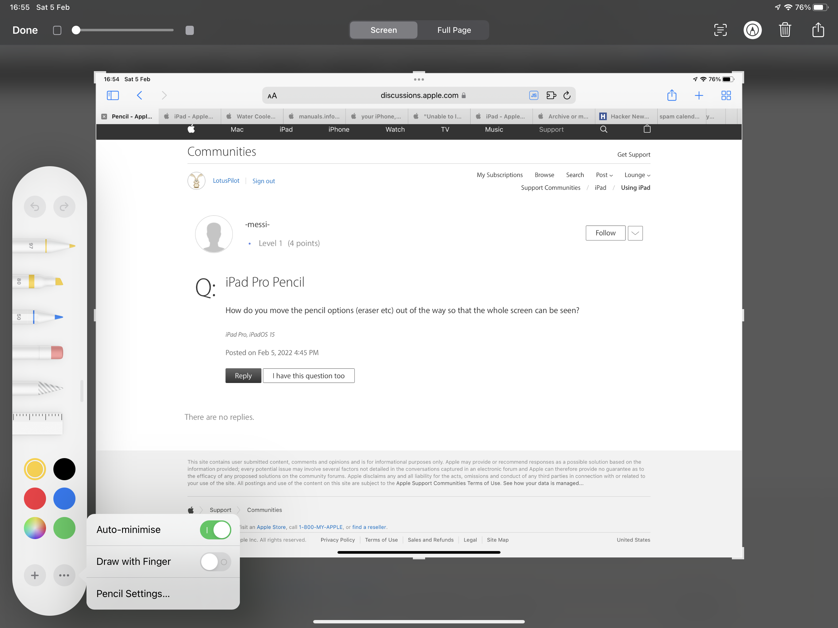 From the Pencil toolbar, tap the ellipsis button (“…”), then enable Auto Minimise: