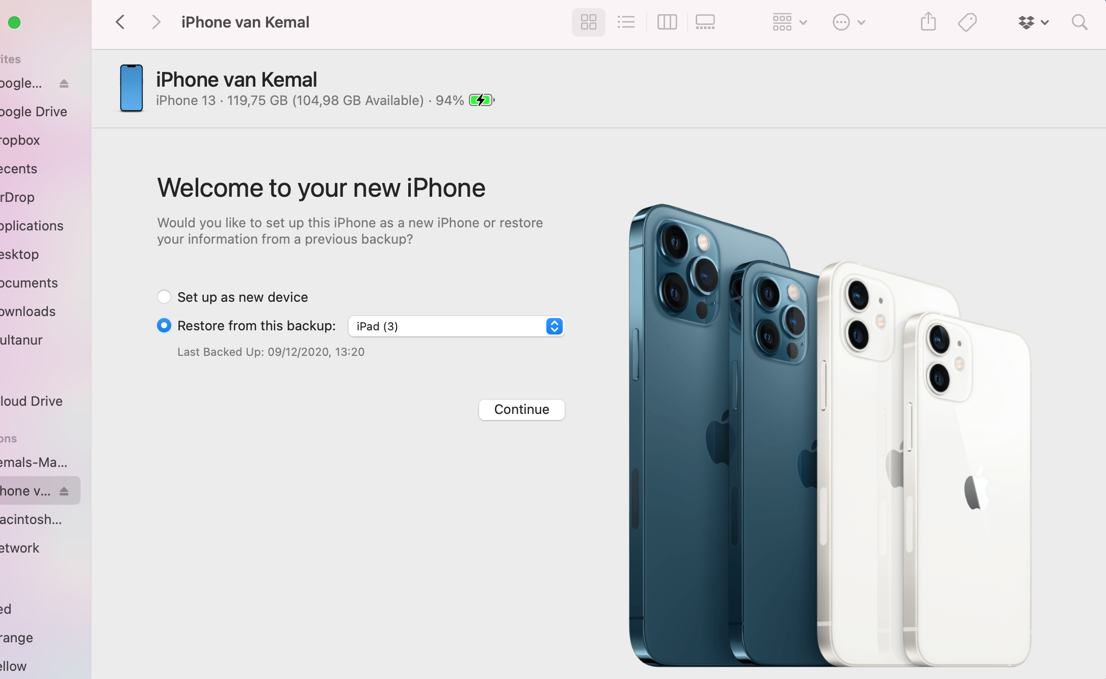Mac wants to setup iPhone 13 from back up or as a new device when i connect with usb for the first time. My iPhone is already configured.