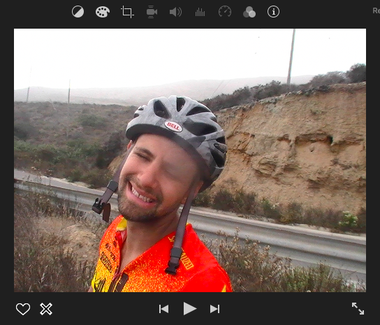 In the second image, I am playing the same clip, this time from my movie timeline, at the bottom. In the playback area, you will see the scene is zoomed, cropped and stretched vertically.
