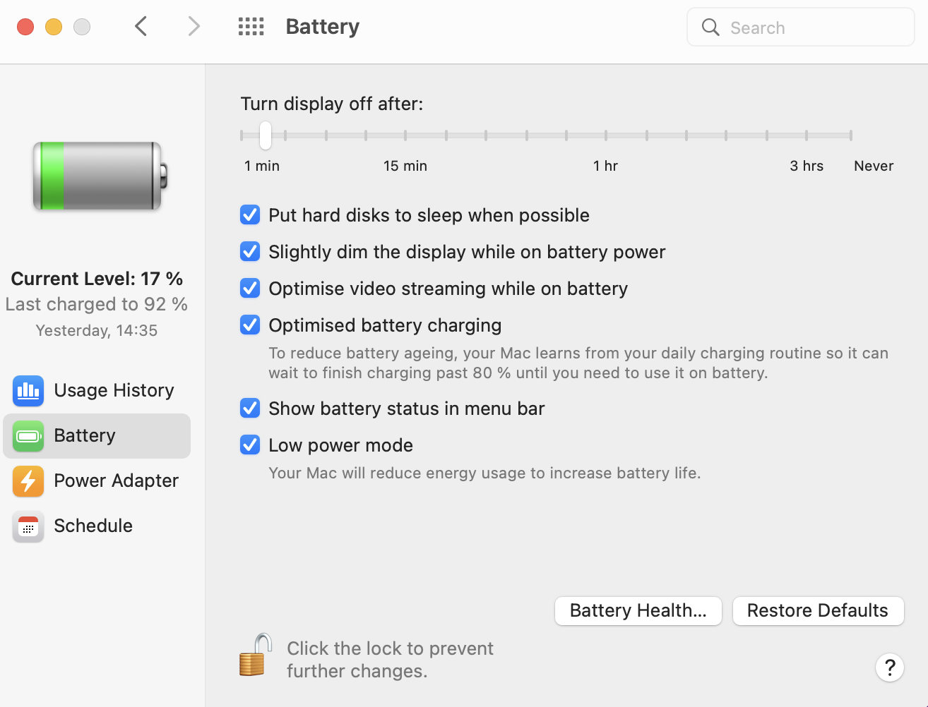 Apple states, this is to be "expected". Me personally, I would not expect battery drain for no reason. I am an engineer with a degree in electronics and a background in IT and I know this does not happen without a reason other than the power being used or a technical defect. However, I am reading lots of stories on the internet, where people state the exact same issue with their similar Macbook Air or Macbook Pro. Therefore I figured, the power must be consumed by the computer. So I am wondering what is running in the background. Which tasks are so important, that they are running, even when the computer is supposed to be switched off? There is nothing I can think of. I have deactivated Siri and location services. Is the computer still eavesdropping on me? Giving away my location to the "Find my Mac" service? Maintenance Tasks, the whole night, on a pristine computer with almost no software, other than the operating system? Bitcoin mining? Working for the World Community Grid? I also do not need frequent checks on new Mail or other messages that I needed to be notified about. In the end I still have a phone who does this. Activity Monitor shows no apps with significant power usage, only in the Battery Settings I can see on the "last 10 days" tab, that there was a battery drain with the display off. Needless to say, that the Macbook Air was not connected to any external devices during that time, also no bluetooth devices attached.