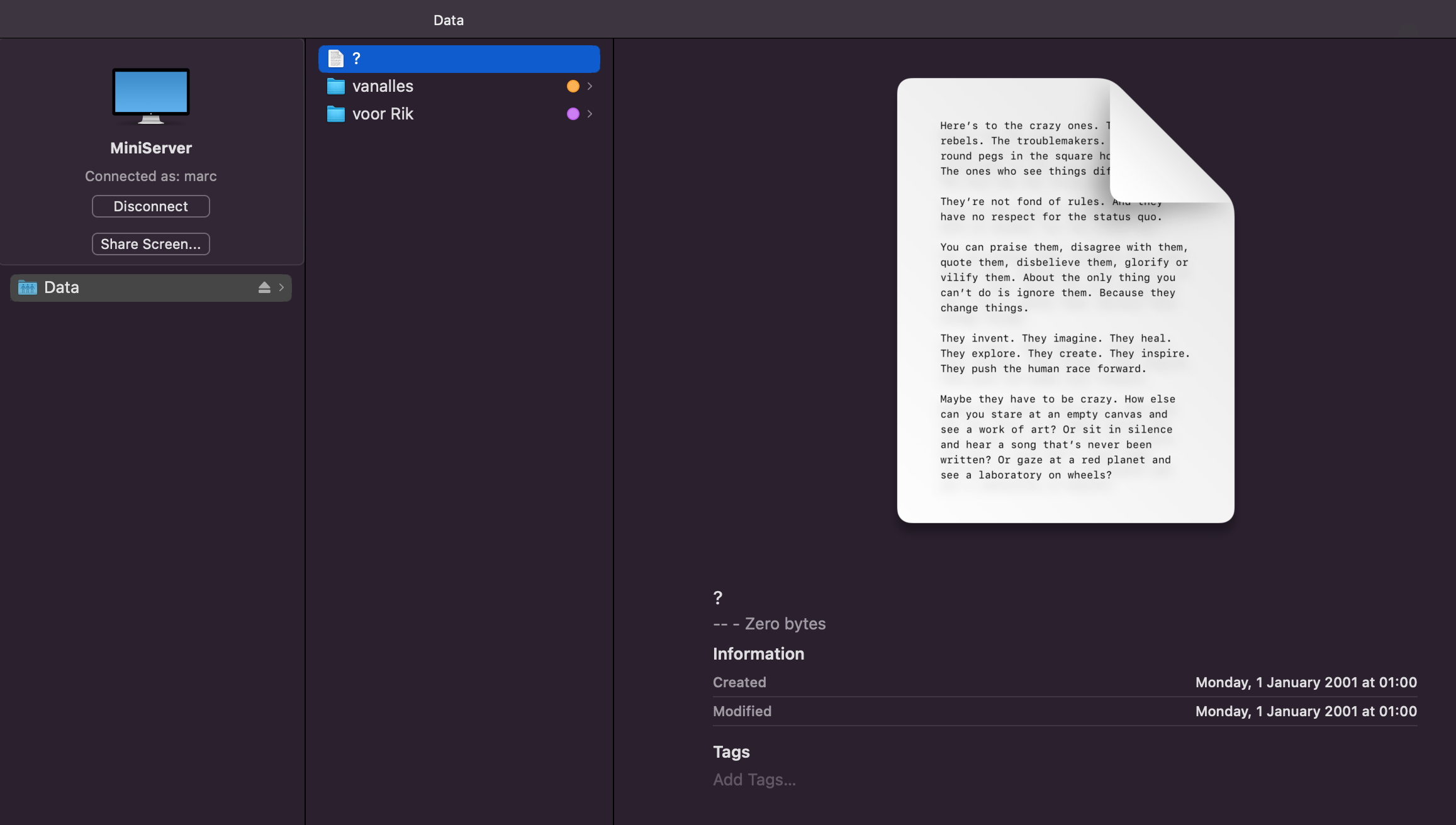when I connect via SMB file sharing with two different sharing only accounts and one user changes the name of a file (doesn't seems to happen with a folder) the on the other user the name changes to a ? and the file becomes zero bytes. reconnecting solves the problem but that's no usable solution.