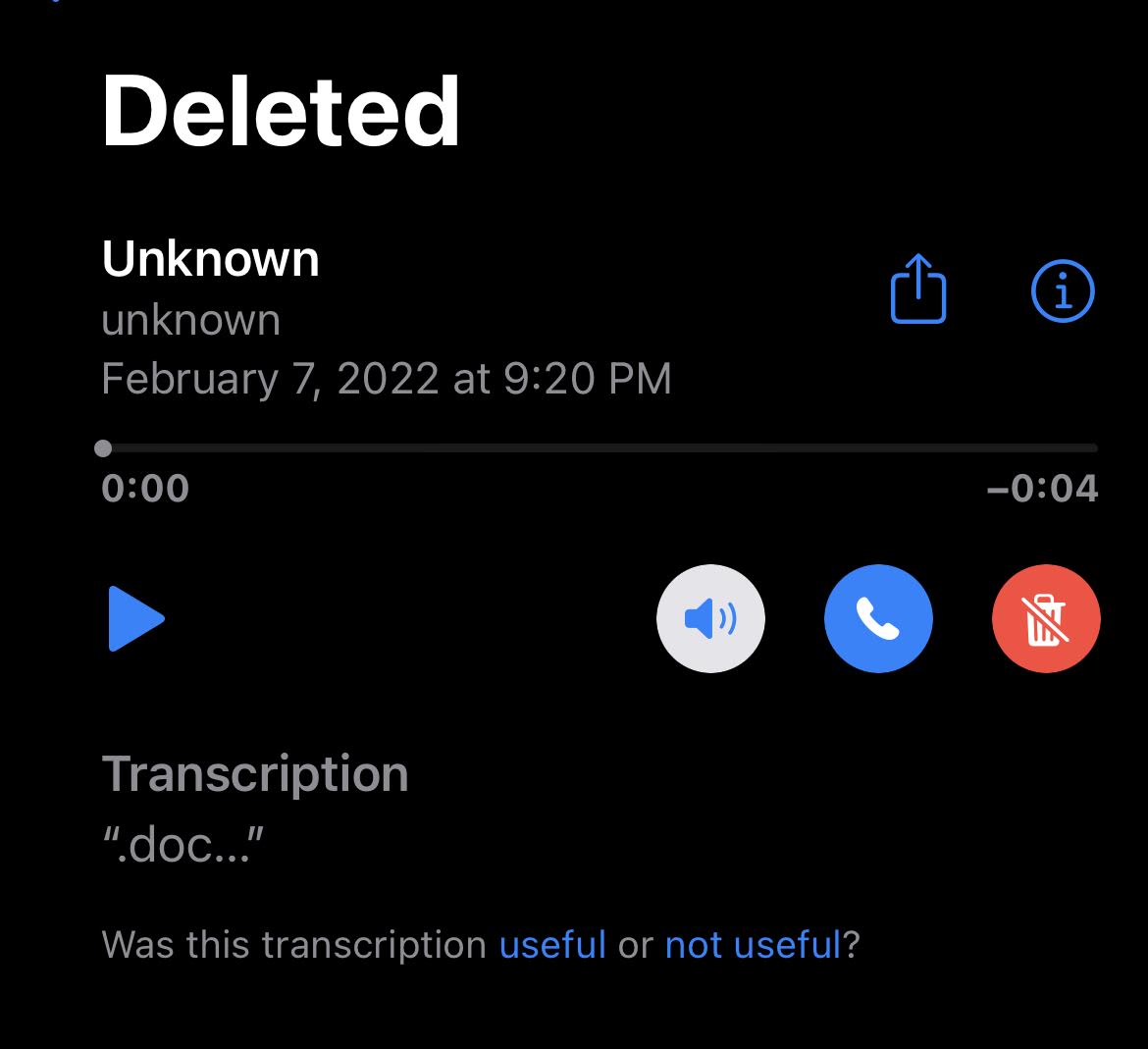 Has anyone seen anything like this before? It was an empty voice message with noise in the background and I noticed the transcript after listening to it. Definitely spooked.