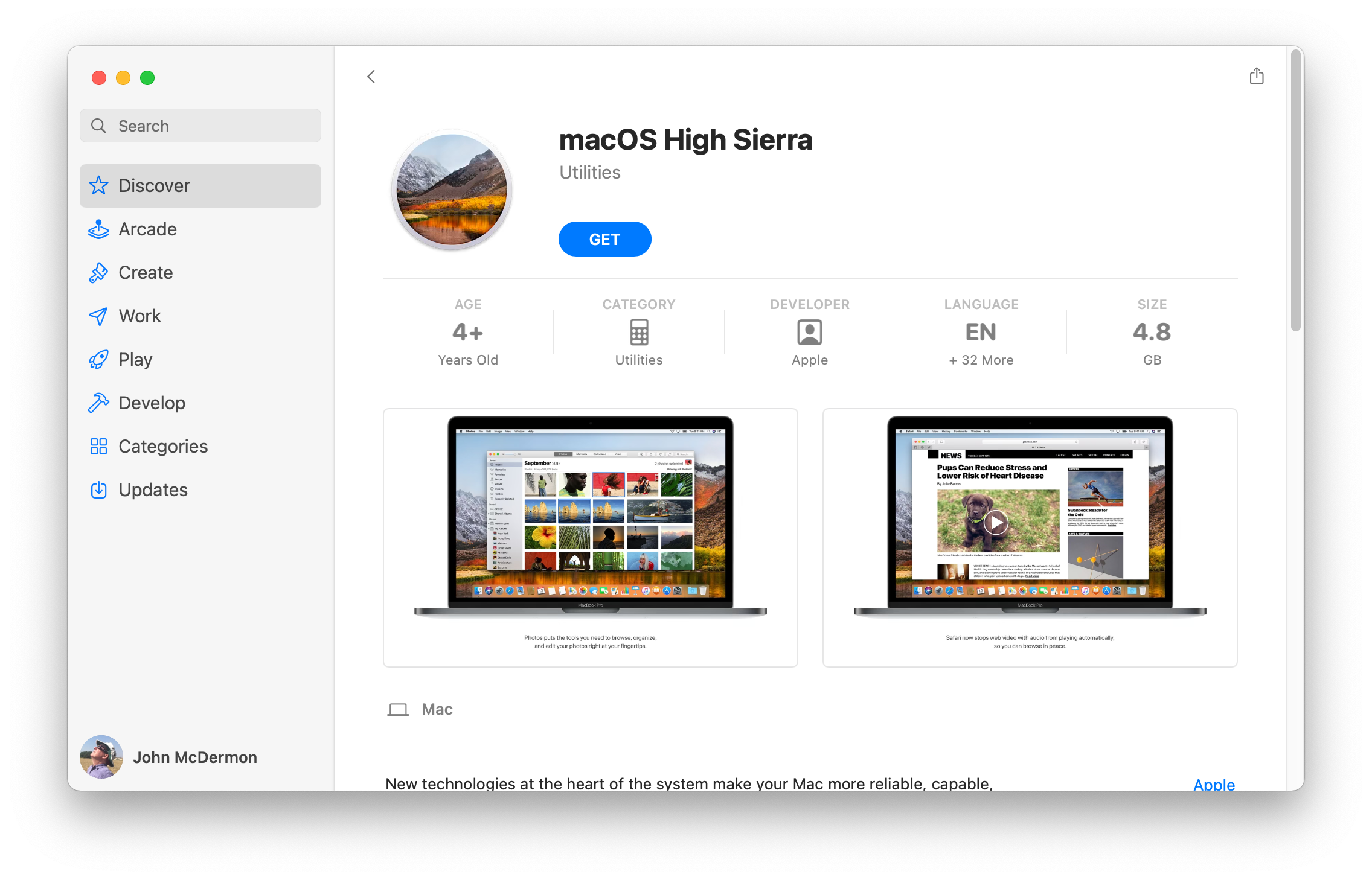 I'm on a 2018 MBP running Monterey (12.2). I'm trying to build an external disk to boot and run High Sierra (10.13). I need to run a legacy application. Following the instructions in this article, using Safari, I follow the links to the High Sierra installer in the App Store. The App Store opens and I'm on the High Sierra installer page with a "Get" button. Clicking the "Get" button on the High Sierra page in the App Store opens the System Preferences and starts checking for updates. Of course System Prefs doesn't find any updates, since my system is up to date (see attached screenshots). So now, how do I get a copy of the High Sierra installer so that I can install it on and external drive? Any help will be greatly appreciated.