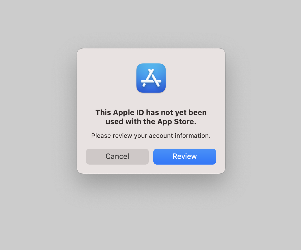 When I am trying to log in to my App Store I received a message: This Apple ID has not yet been used with the App Store. After I press to review it says: We've run into a problem. Please try later. I sign in App Store in the browser, the login and password are correct