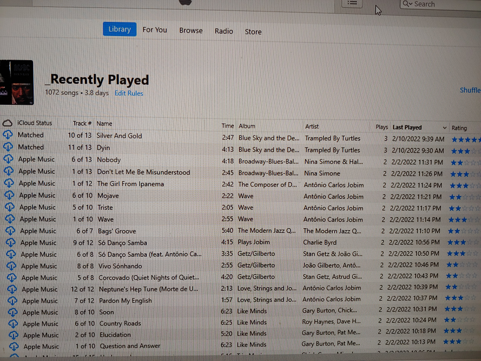 Yesterday, I noticed that it had been over a week since my iTunes had gotten any Play data from my phone (the last item it showed in my Recently Played playlist was Feb 2). However, when I opened the same playlist on my phone, it was showing all of the items from the past week even tho they were not updated in iTunes (and also not showing in the same playlist on my iPad). I tried a few things like rebooting my phone and clearing the app cache, but it still didn't sync those items from the past week. Then I cleared the app data on my phone and when I went back to the Recently Played playlist, all of those plays from the past week were gone. This was pretty much expected and just proved that the data was sitting only on my phone and had not been synced to the cloud or my other devices. At this point, it appeared that the playlist was showing exactly the same songs across all 3 devices, so I decided to run some tests.