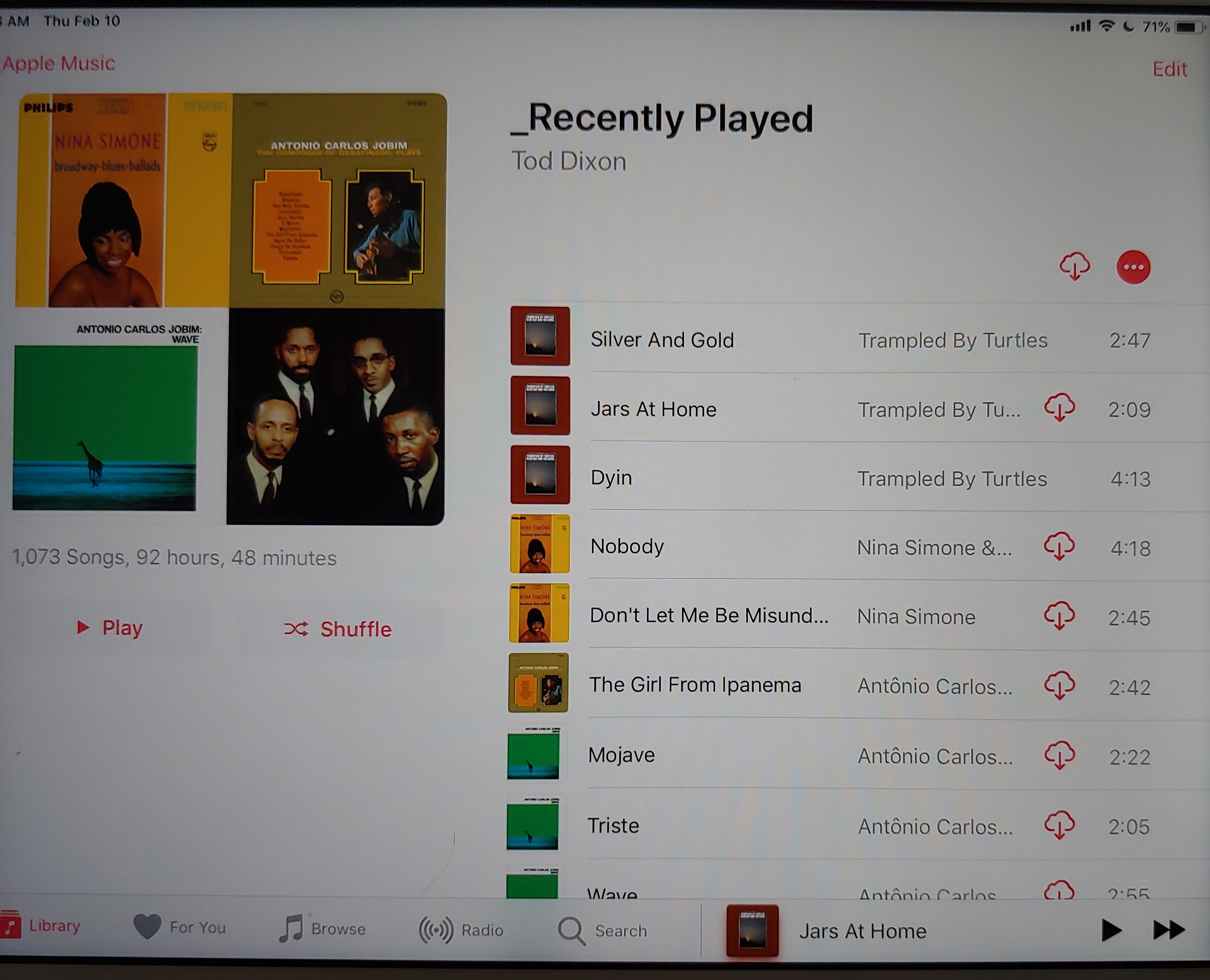 First thing I did was play one song from the iPad ('Dyin') and the play data did sync in real time to all 3 devices. So, I played another song on the iPad ('Jars at Home'). This data did not sync across devices and is only showing in the playlist on the iPad. As I said, this is somewhat typical for it to sync the first song played only to sync the rest at a later time.