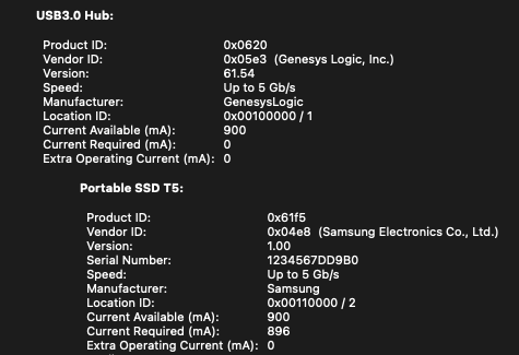 I recently bought the Samsung SSD T5. It connects fine when using one of the two USB-C ports but when I use a USB-A hub (Anker) it isn't recognized. I don't want to have to pick either charging it without the USB-hub (not being able to use any USB accessories) or vice versa.