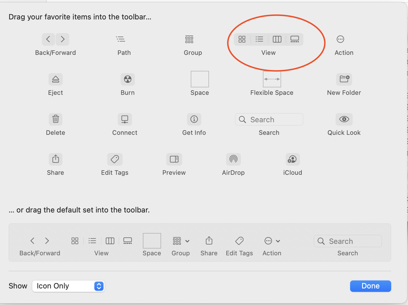 I just set up a new laptop running Monterey. There's one thing I can't figure out and it's really bugging me! I don't like having the Finder toolbar's View section as a dropdown menu, I liked the old way with individual icons instead, because my fingers are used to changing those at a single click and I do it frequently.