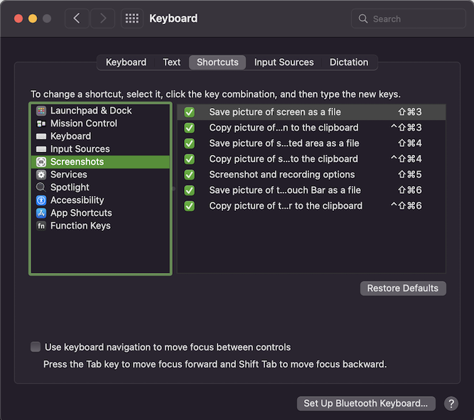Modifying screen capture key commands - not listed in keyboard shortcuts