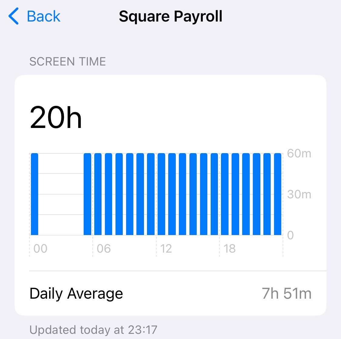 Square Payroll Shows Screen time of 24hr