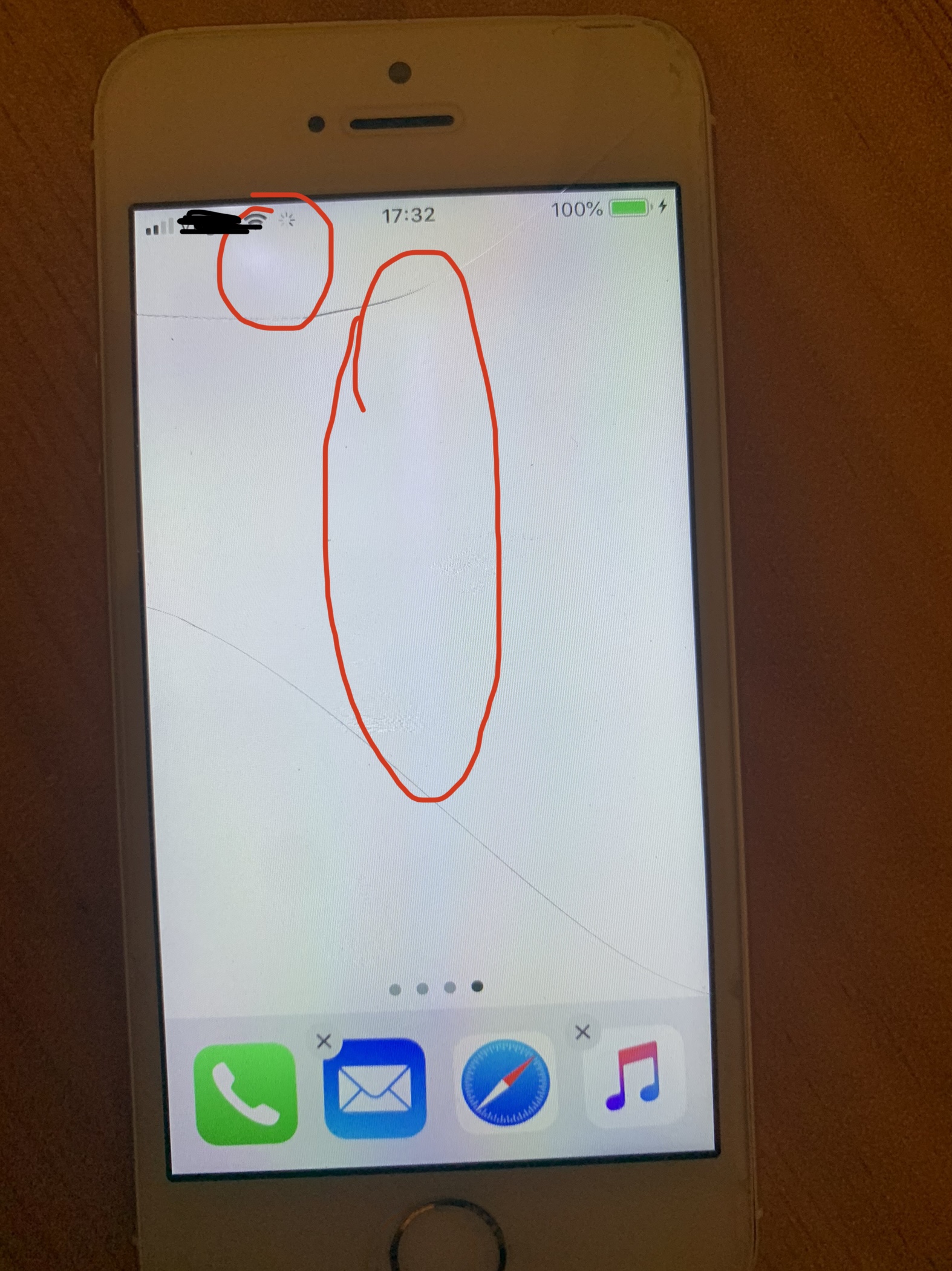 I have an iPhone 5s and when the screen is white you can see these brighter spots on the screen. They are hard to see because of camera quality. Ignore those colourful things on the screen, thats also because of my camera. I am guessing maybe its a backlight problem but I am not sure.