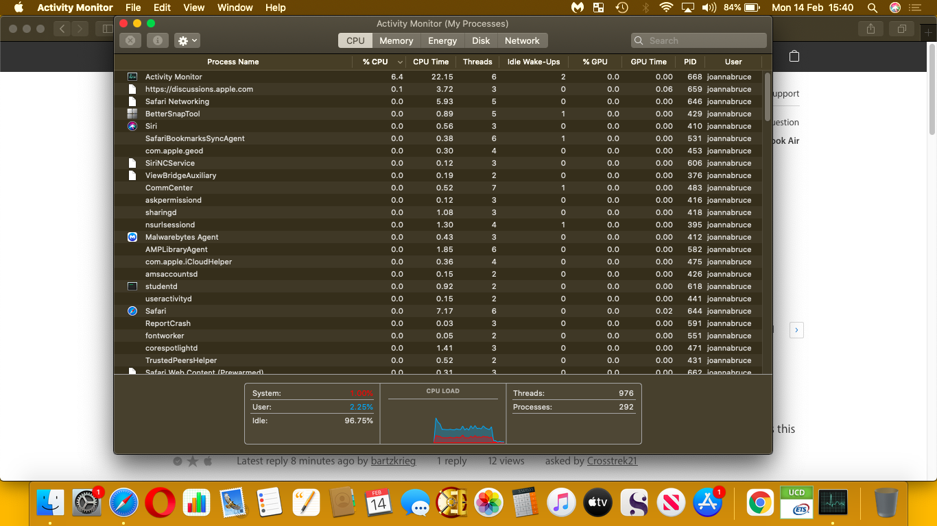 I suggest uninstalling "Malwarebytes". You don't need it unless you want to uninstall adware that you were deceived into installing, and even then you don't need it. Should you suspect adware is causing a Mac to perform poorly, Activity Monitor is a great way to confirm its presence. With a little guidance from your fellow Mac users, additional investigation can easily identify and eradicate what you installed, without resorting to installing anything else.