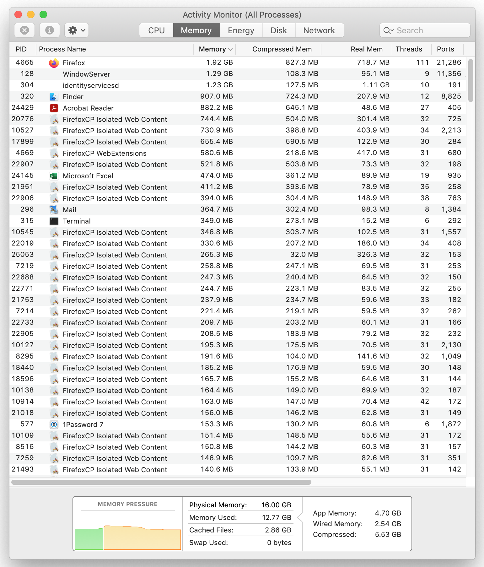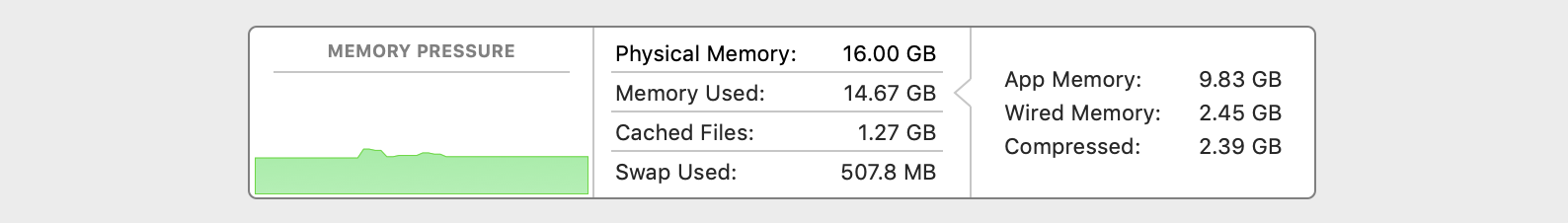 OK, can someone explain to me why the swap file isn't being taken advantage of here with the memory pressure being in the yellow?