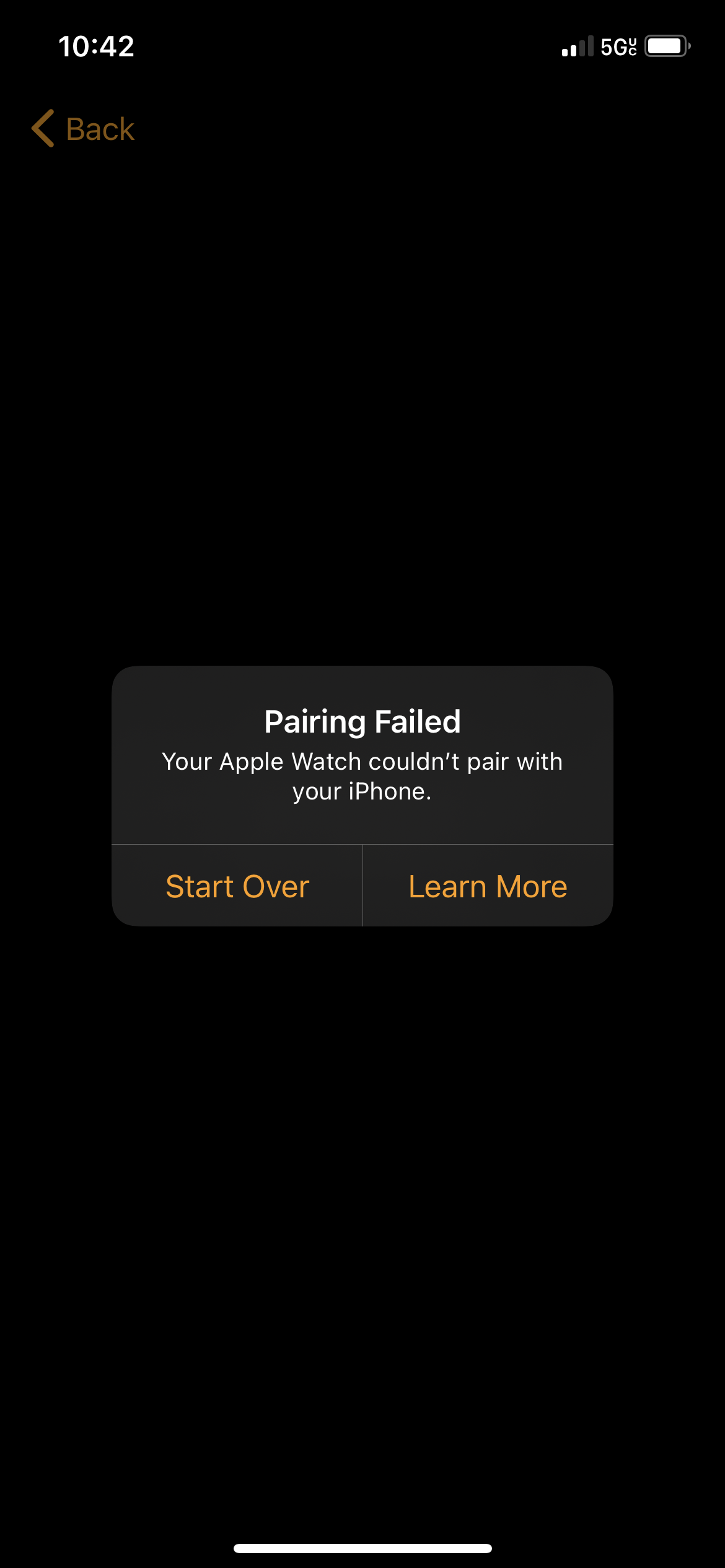 Watch pairs when when it ask for right or left and top or bottom then Say, “Your Apple Watch couldn't pair with