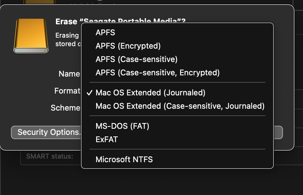 How can I encrypt my hard drive when formatting it for mac os? The encrypted option isn't available.