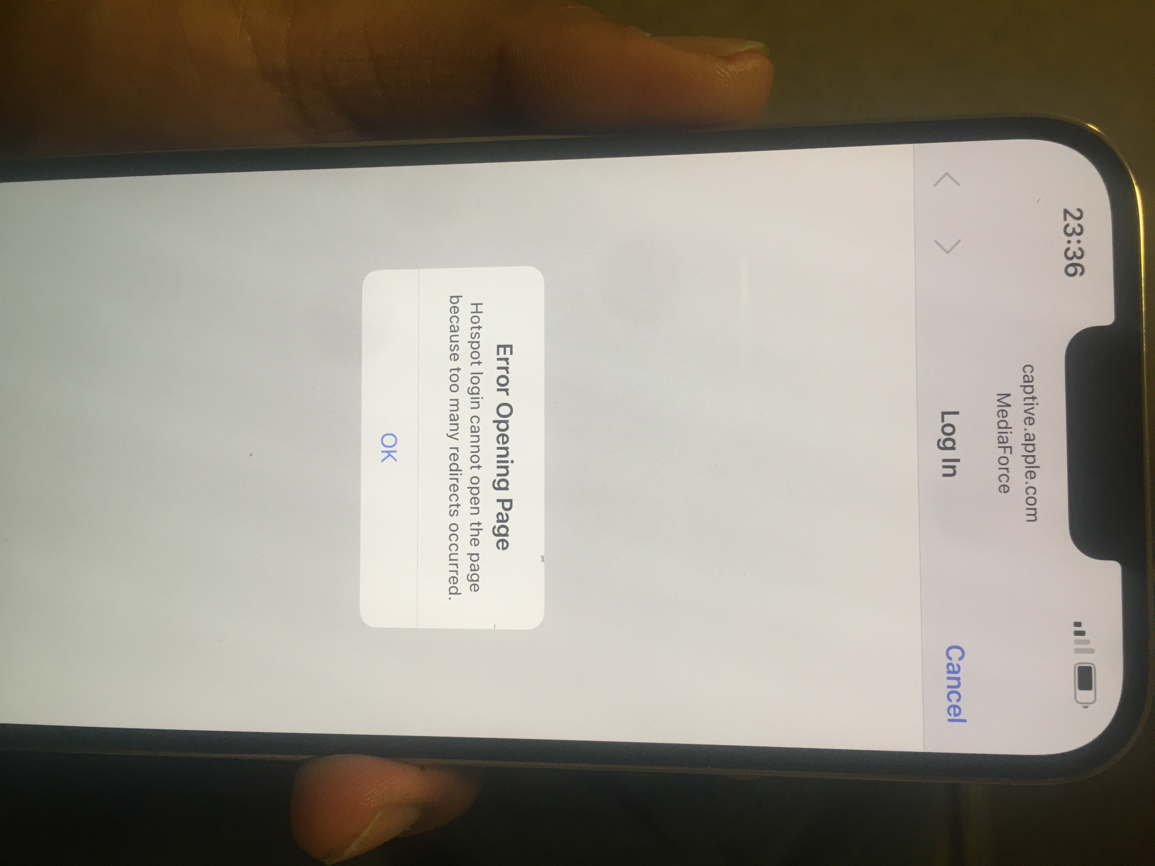I am totally confused when i try to connect media wifi on my new iphone it says hotspot cannot login error loading page. Please can anybody tell how it fix