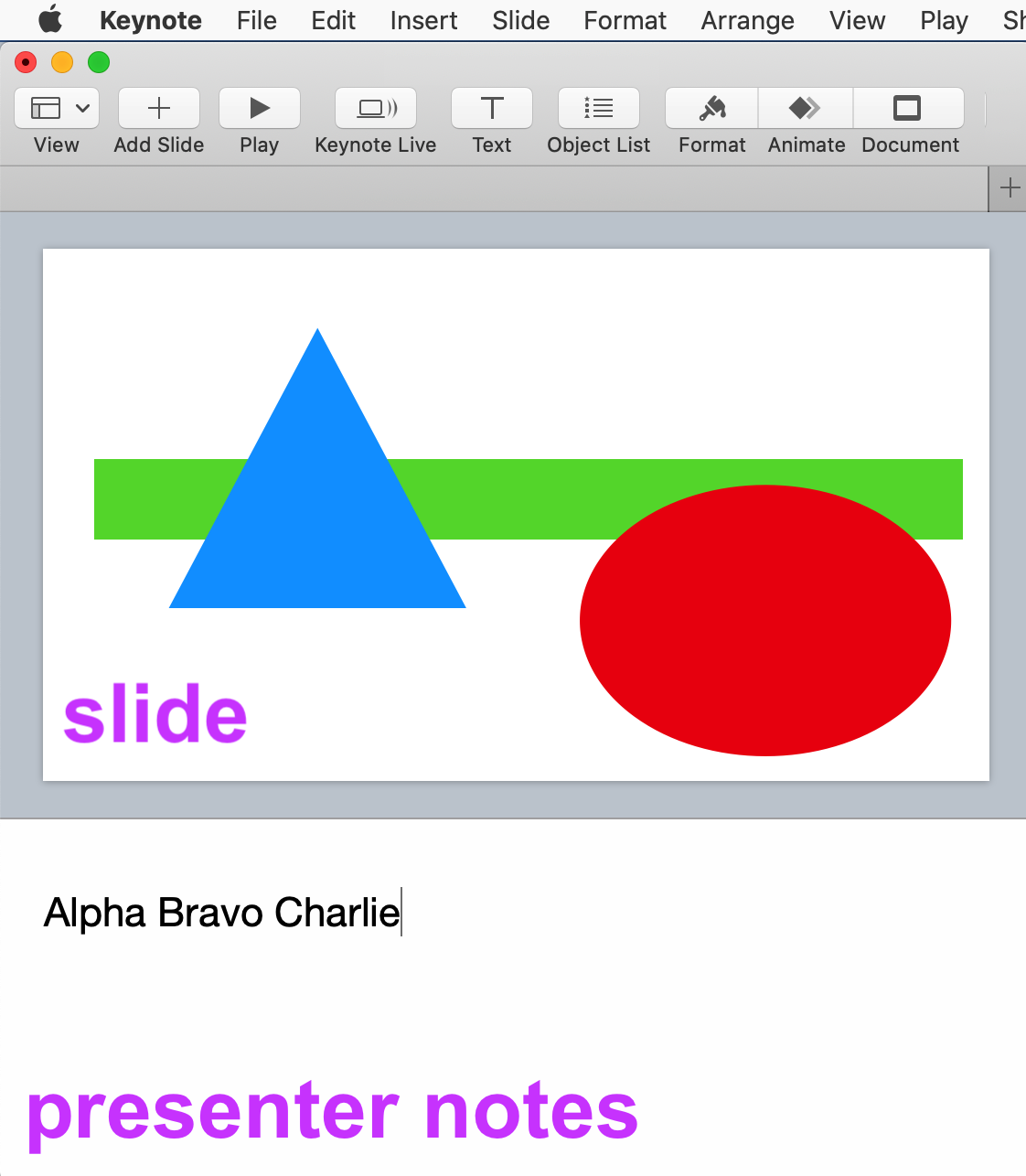 Presenter notes are shown in a separate pane, they do not display on the slides