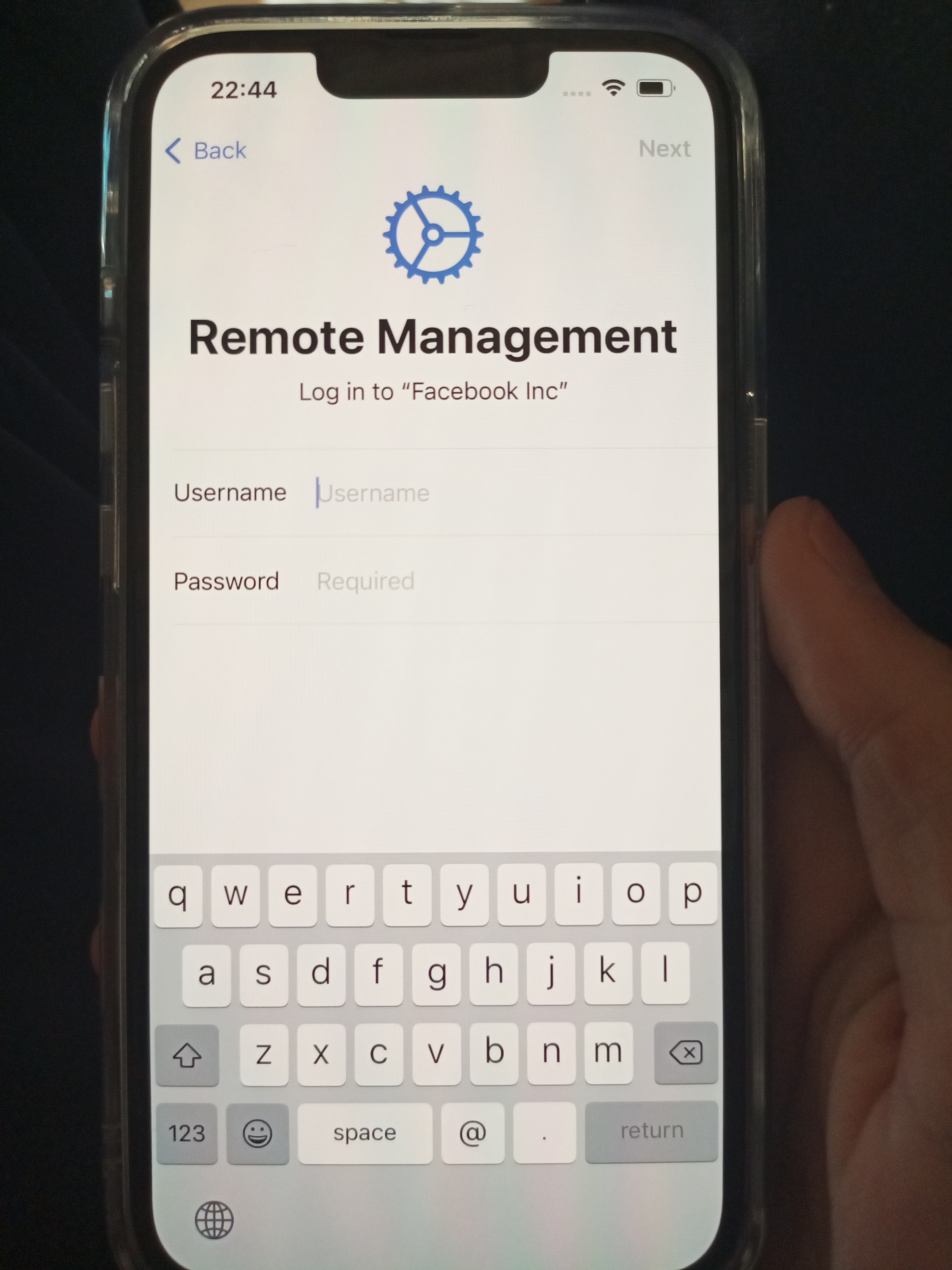 "Remote management: I have bought a new iPhone 13 pro. When I switched on it. There is a remote management. How can remove it or where can I find username and password?"