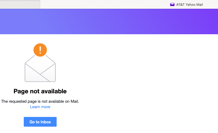 A day or two ago I started getting the following webpage whenever I click the bookmark for AT&T Yahoo: