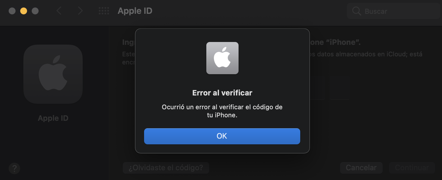 "Verification failed, something happens trying to verify the code from your iPhone"