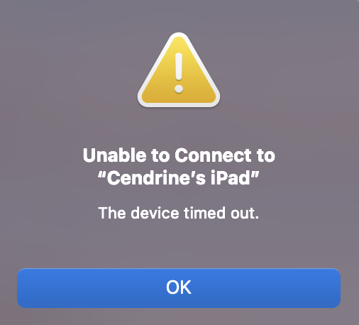 At first I was getting a "device timed out" message, now I get a "wifi" error, see screenshots.