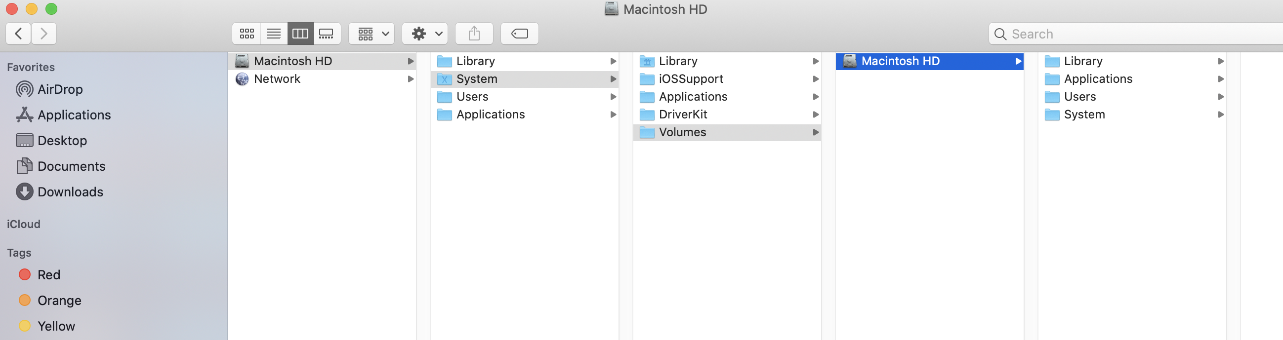 In trying to download the latest Monterey OS, I was informed that I only have 16 GB of storage available (out of 121 GB total). While looking for ways to free up storage, I found that by opening Finder and selecting the "Systems" and "Volumes" folder that there is a complete duplicate copy of my entire hard drive. Is this by design, or is this something I can delete by choosing "Eject Macintosh HD"? I am attaching an image of my Finder window, as well as my disk storage, if that is helpful. Thank you in advance to any of you who are willing to provide advice.
