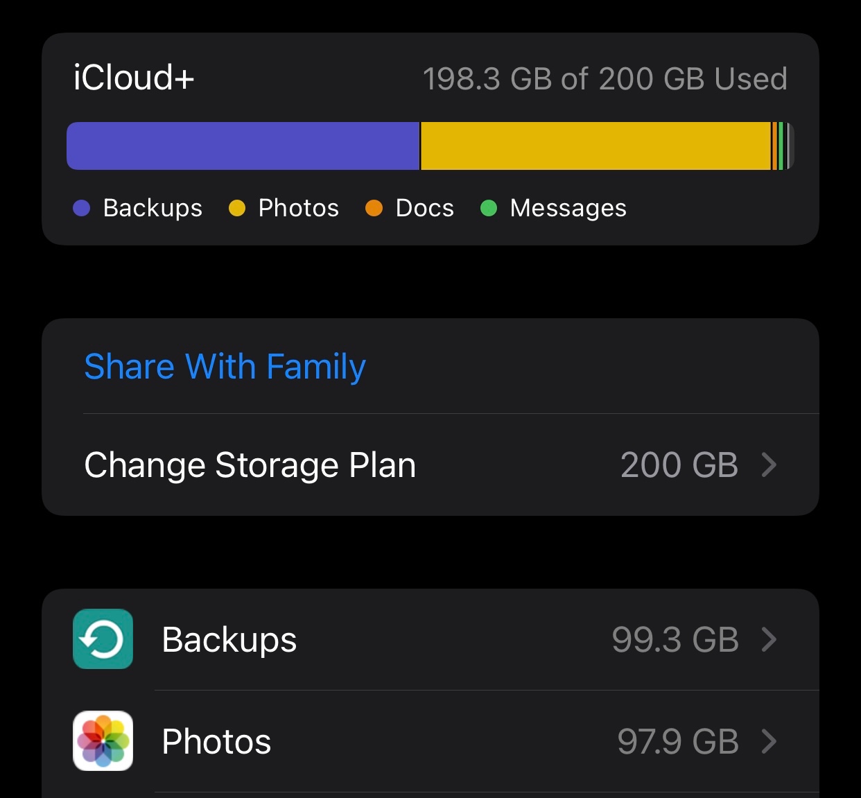 on my iCloud I have 200 GB plan , now 180 GB is occupied by photos ( 90 GB in photos and another 90 GB in backups ) how I can get rid of one of them so I have more space and also while doing it how I can preserve all the photos and avoid losing them . Thanks
