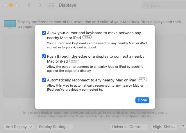My add display option was missing , I can't use neither universal control and sidecar after updating to the newest version on both MacBook and iPad. I tried the solution provided above, it doesn't work at all. Sigh><