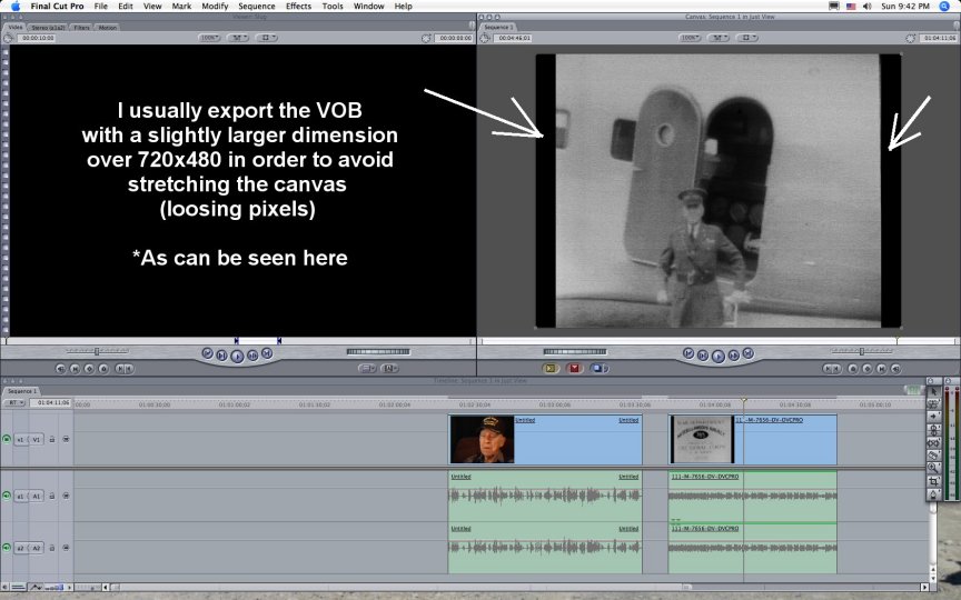 Hello BenB & Thanks everyone - Regarding extraction of VOB's PC vs. Mac is it possible to create files that wouldn't require render in FC 6.0.6? After some testing, it seems 'unlikely,' (both Stream Clip exports and PC exports) required render. This LARGE quantity of DVD's contain archival footage, (all the same SD format). They are NOT professional HD Dubs. The final production will be in 'Standard Definition' for DVD.