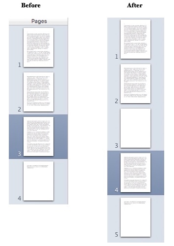 Pages are added to a section automatically as they are needed to accommodate added text, or to accommodate text that has been displaced by the insertion of an image or other object.
