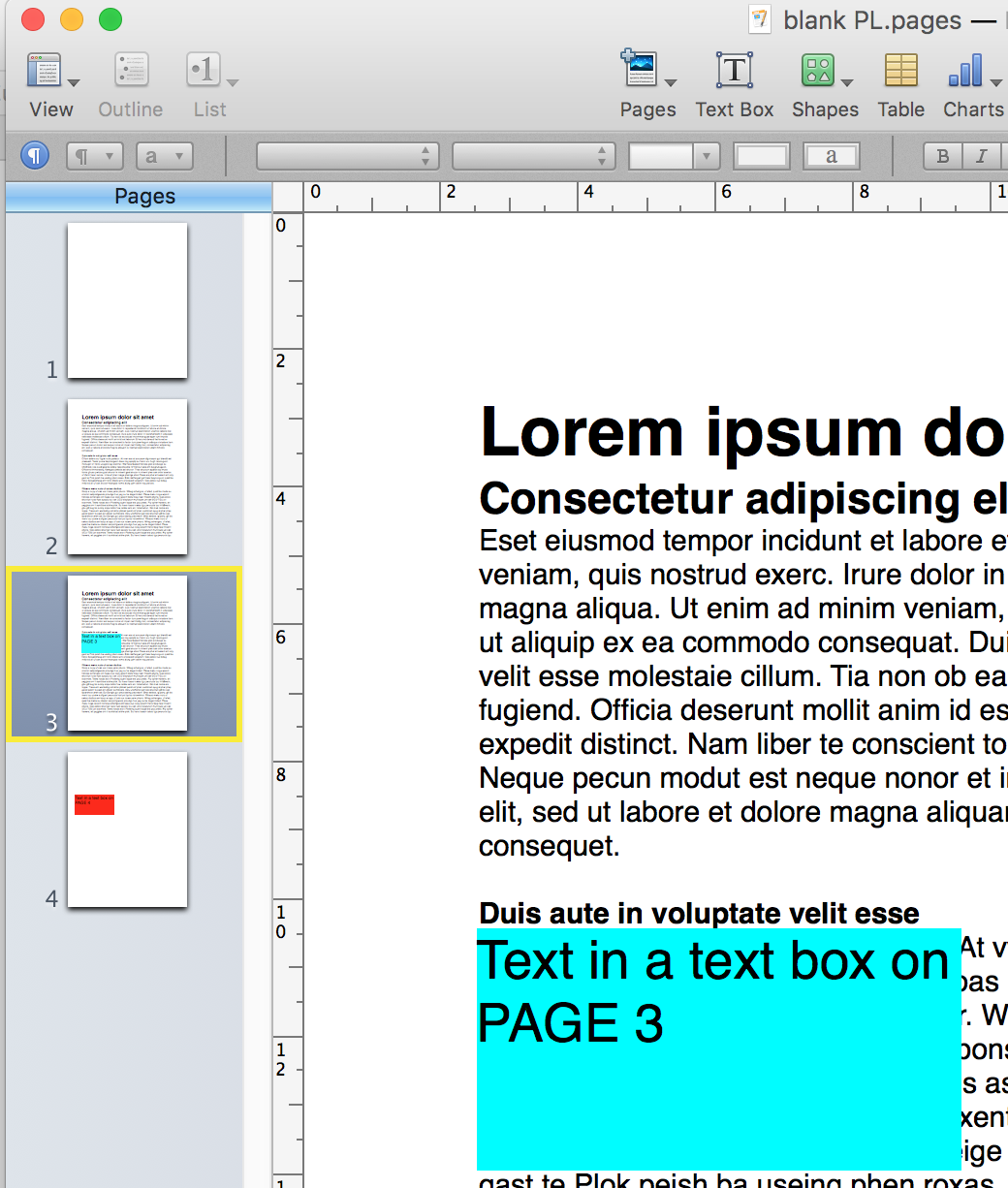 A Text page differs from a Blank page only in containing a text box filled with placeholder text, formatted as the one shown here as page 2.