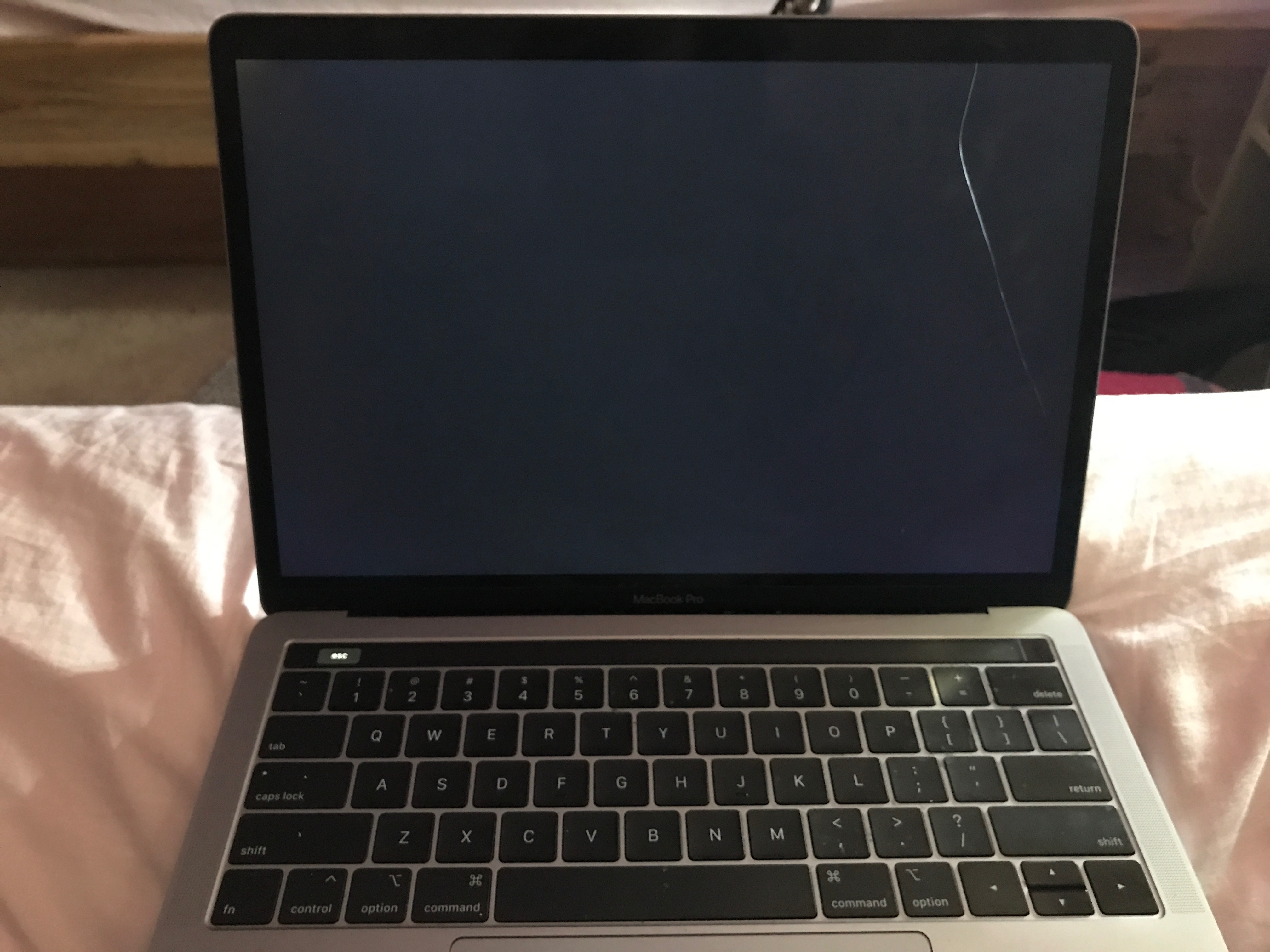 why is my macbook pro screen black as if its starting with this line even though there are no cracks