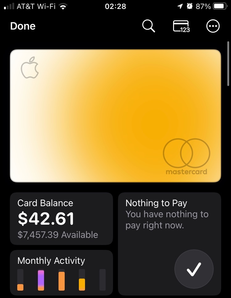 I’m not sure why but the Apple Card won’t let you pay off your monthly balance early. I’m not speaking of monthly installments. I’m also not referring to pending charges. The dial that lets you “pay more” wont let you pay your entire balance when you want. I messaged Apple and Goldman to some extent with no answer. It feels like by not allowing you to pay off your card when you want the probability of it accruing extra interest is likely. I’m sure there is a small window before your payment is due where you can pay it off, but this feels dishonest. I don’t have this issue with any of my other cards.