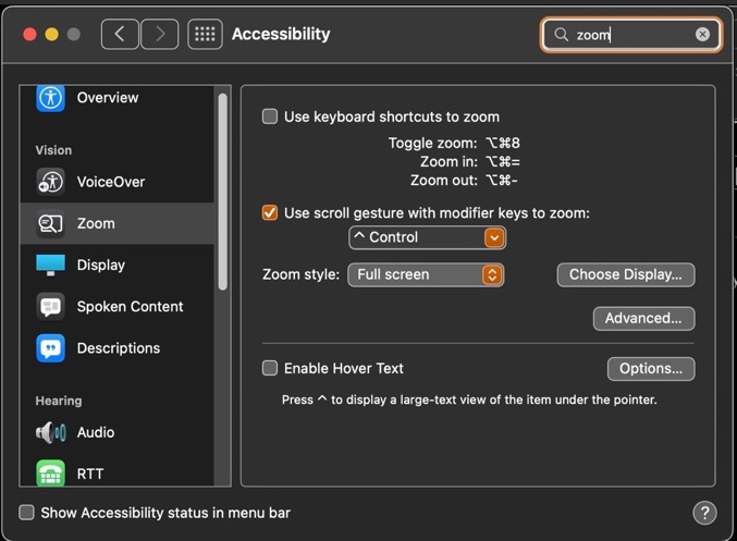 Hello, I am having a similar issue ever since the new Monterey update. My Powerbook screen zooms in, seemingly randomly. I have troubleshooted for hours, on the web, being sure to turn off any zoom preference in accessibility, Mouse, keyboard, trackpad, Safari, wherever there are zoom options. But no pref I've turned off is stopping it. I cannot find a pattern in my hand gestures. It seems as if it just happens randomly while I am working. I've turned off all the tick-box gestures in trackpad System prefs, and mouse, in case one of them is doing it. Even as I type this now, half of my typing is forming off the screen. The only way I can see what I am typing is to drag the safari screen back and forth across the screen to check my typing. When I restart my Powerbook, it turns off the zoom and corrects the issue. But then, several times a day the zoom engages and I cannot get out of it without restarting. Any insights about getting out and keeping this function off permanently would be much appreciated. But I don't think it's the Accessibility feature because that is turned off. And it's happening to my all my applications as well as the Finder, not just safari.