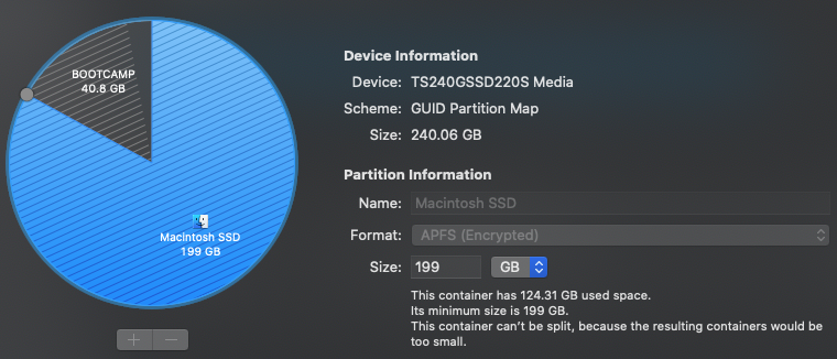 Resize the partition of bootcamp macos even though it reached its minimum size.