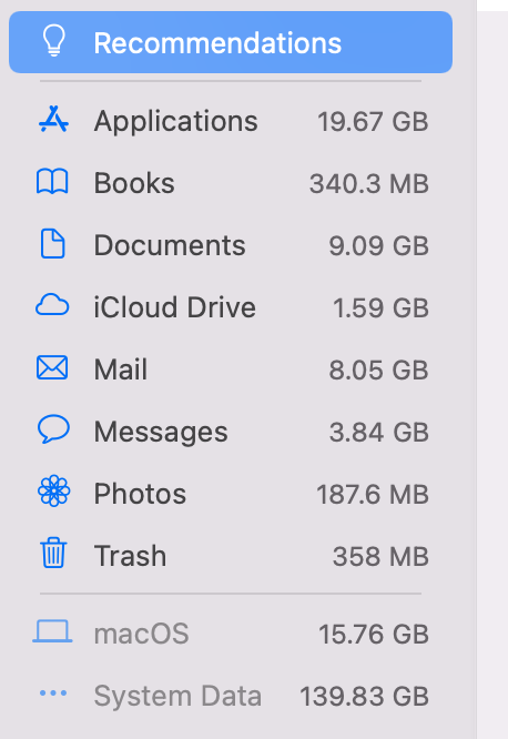 System Data, in this example, is taking up 112 GB, while the categories above comprise a far lower total.