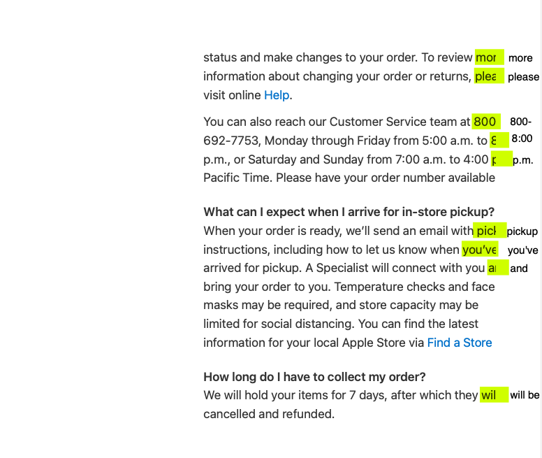 I received the following redacted email from Apple: (Note that I had to create screen snapshots because we can't include a PDF document attachment.) (See entry below.) I highlighted truncated text and inserted full text to right of entry. As you can see quite a bit of text was cut off.