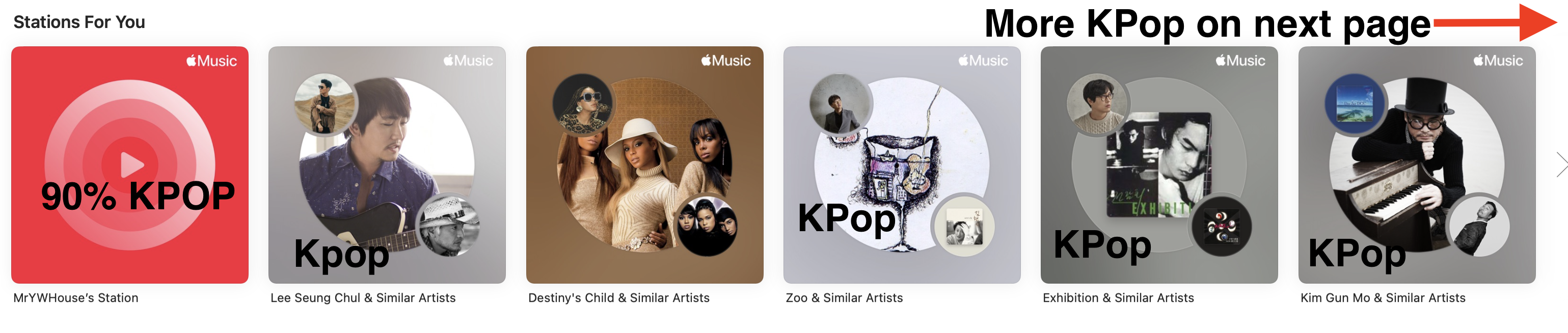 I listened some K-pop out of curiosity, now Apple Music is keep recommending Kpop / Kpop stations.