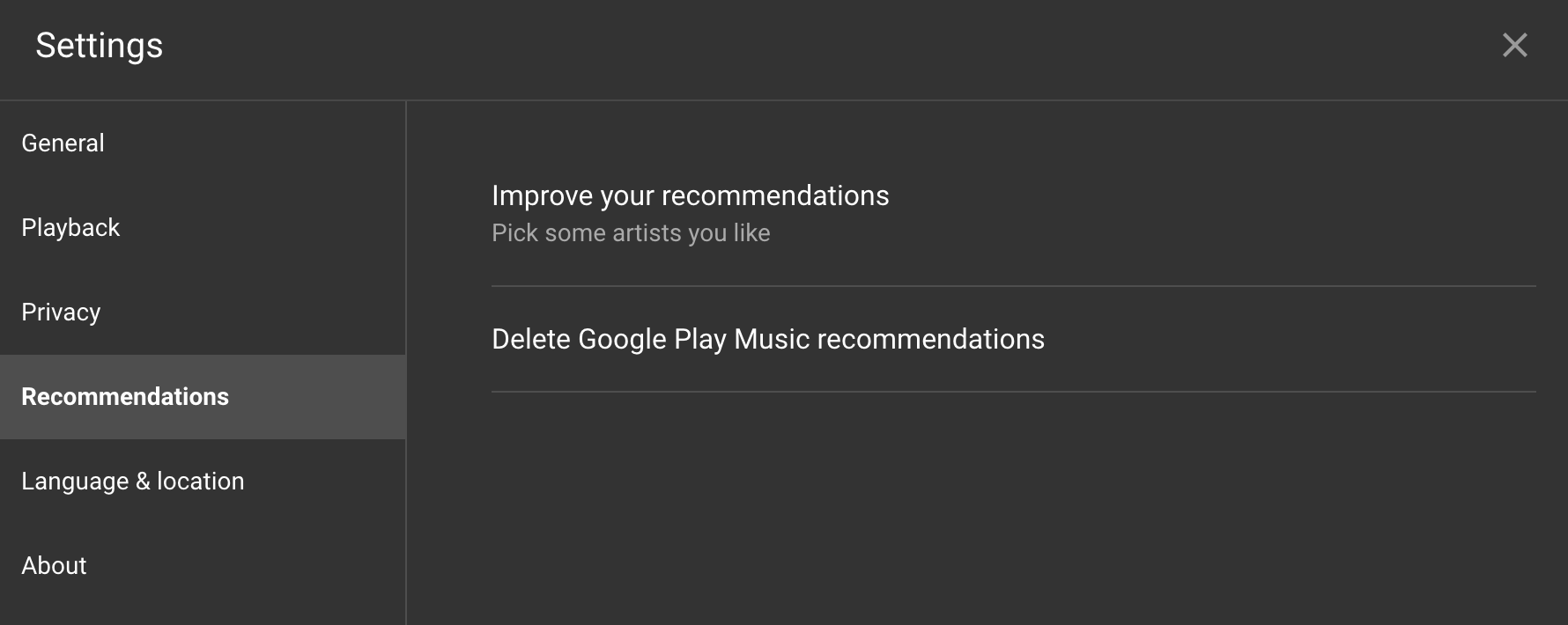 I can delete 'Listen History' very easily and it also let me reset 'recommendation'.