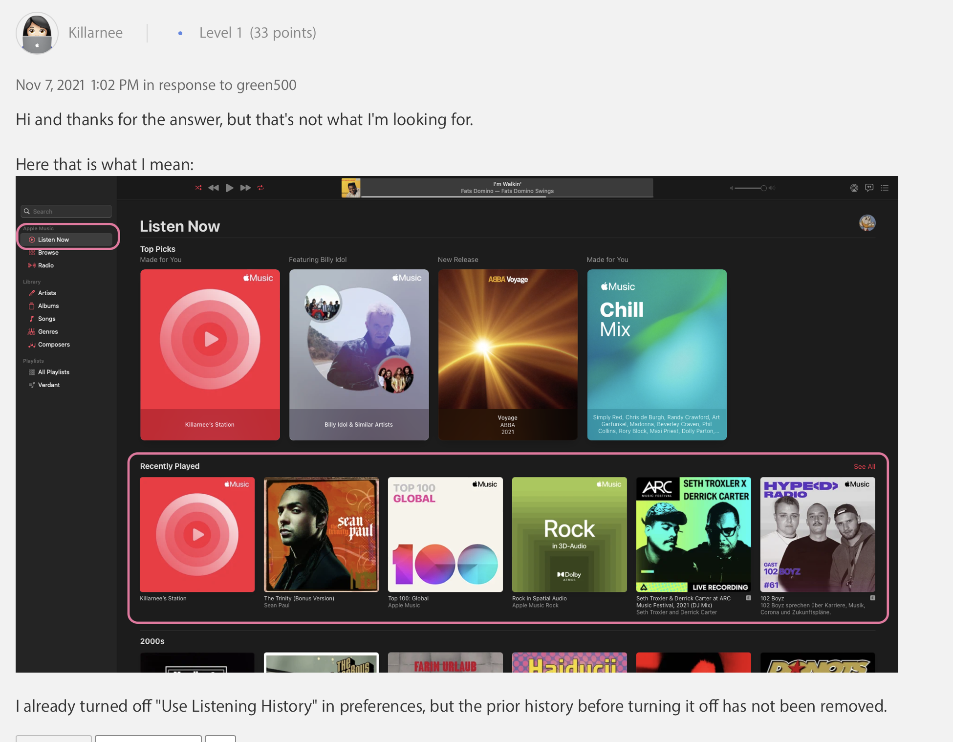 'Listen Now' on Apple Music keep recommending Kpop stations & Kpop albums I don't want to listened to.