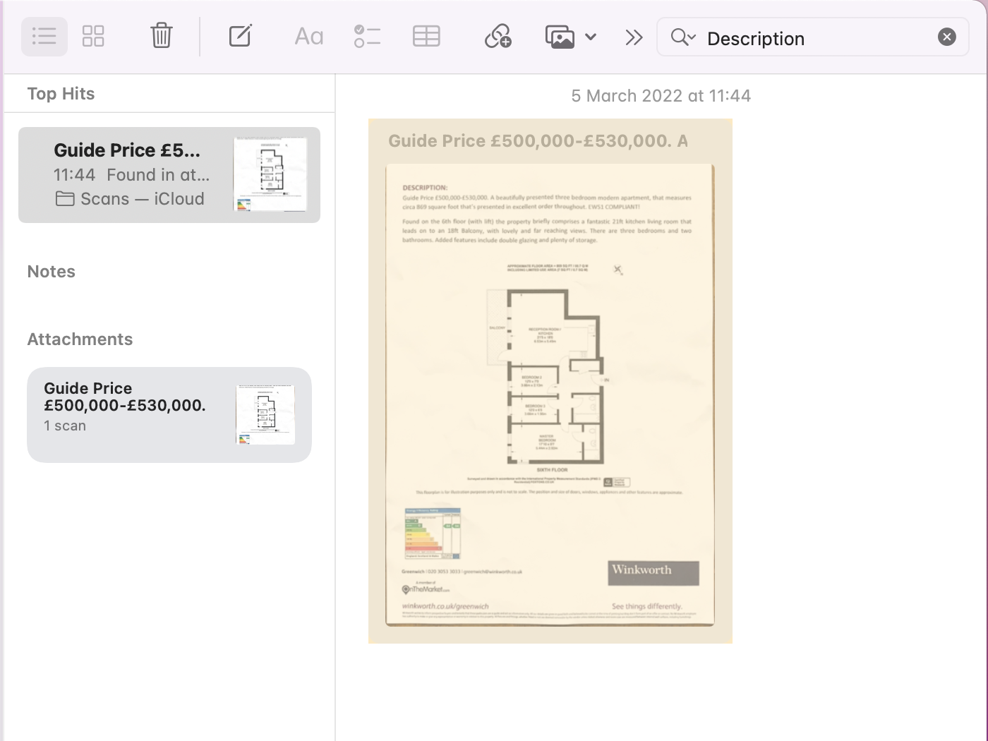 2) The scanned document is then immediatley available in the Notes app both on my iPhone and my Macbook. In the Notes app, I can select & copy text from the scanned documents on both devices. I can also search for key words in the Notes app and find scanned documents this way.