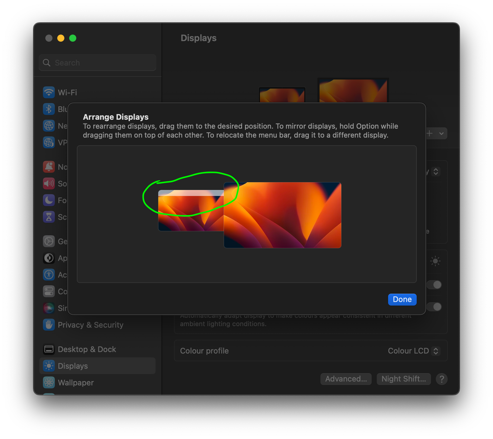 Display 1: LG Ultra HD display connected via Port 1 Thunderbolt to Dual DisplayPort adapter (Cable Matters) connected to Thunderbolt port on GPU.